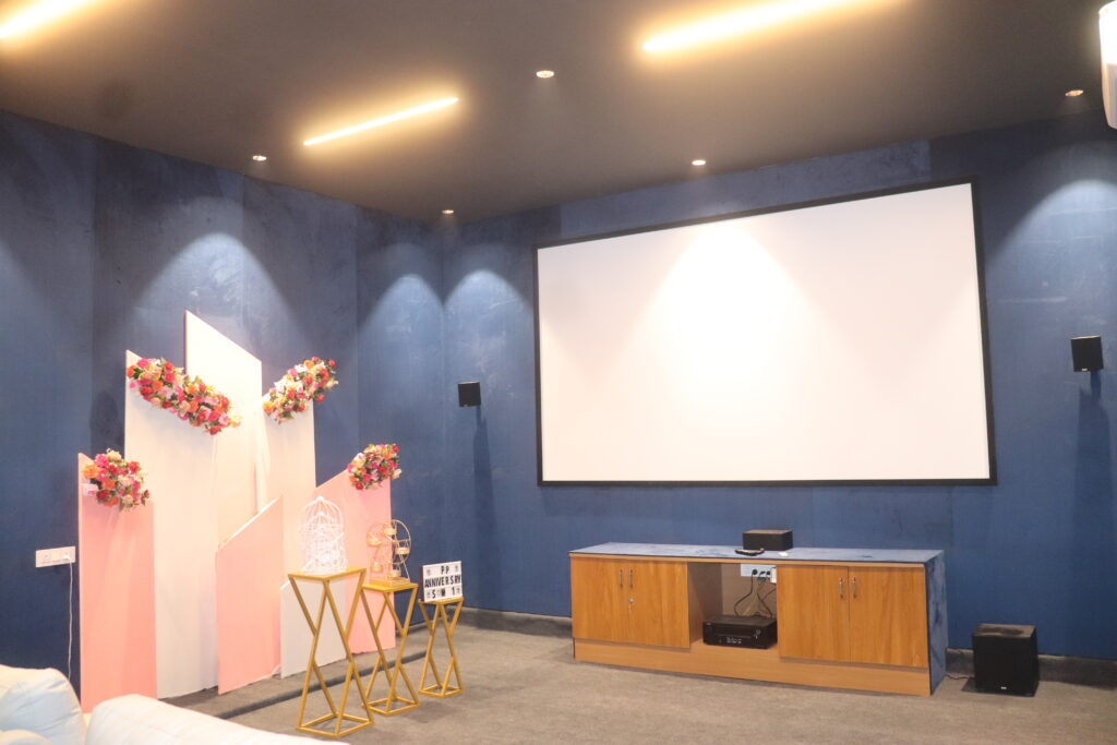 Salaar Studio offers a stylish and cinematic environment with a bold modern theme. It is perfect for mid-size birthday parties, couple surprises, engagement celebrations and fan shows. The dark-themed ambience enhances the movie-watching experience while providing space for decorations and celebration setups.