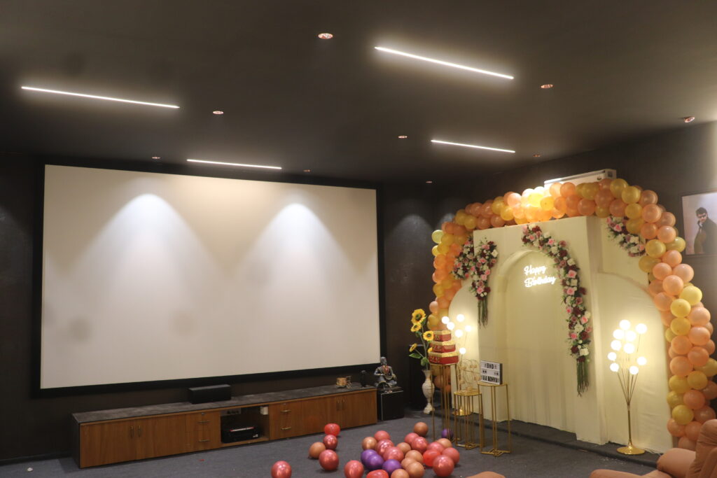 Hitman Show is a compact and budget-friendly private theatre ideal for small gatherings and surprise celebrations. This room is perfect for close friends, small birthday parties and casual movie celebrations. It offers a cozy cinematic feel with customized decoration options.